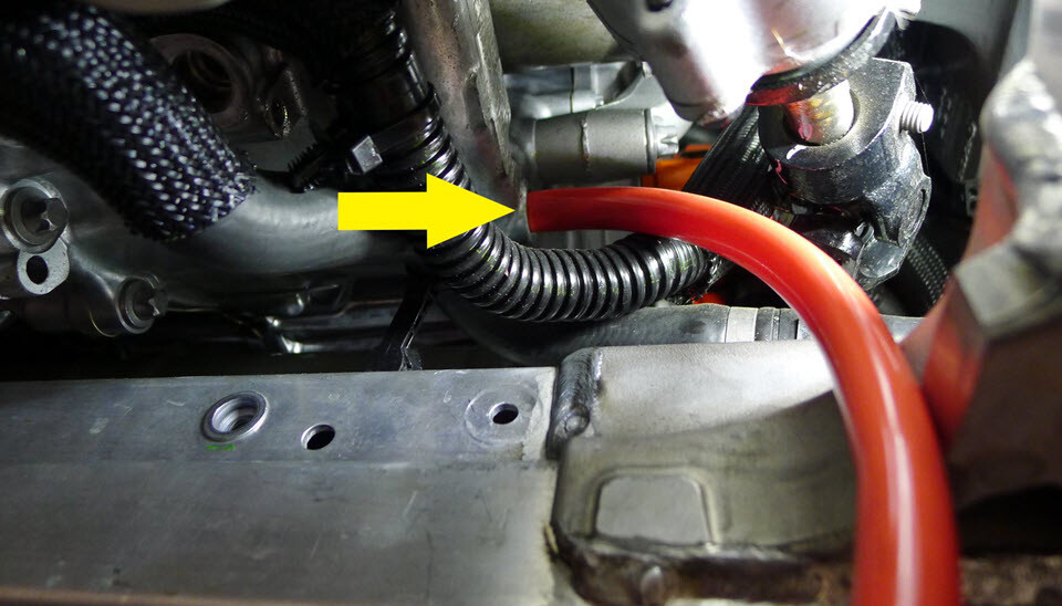 - Put a foldable funnel under the oil filter on the front subframe assembly.