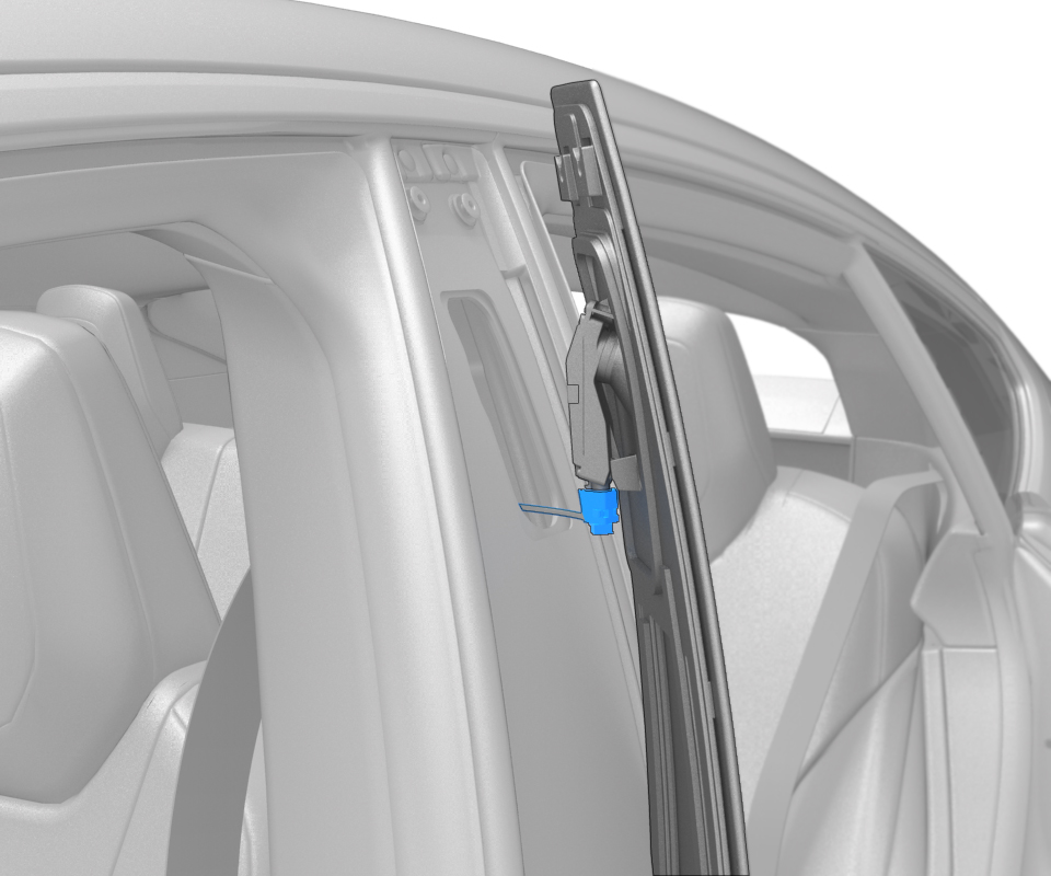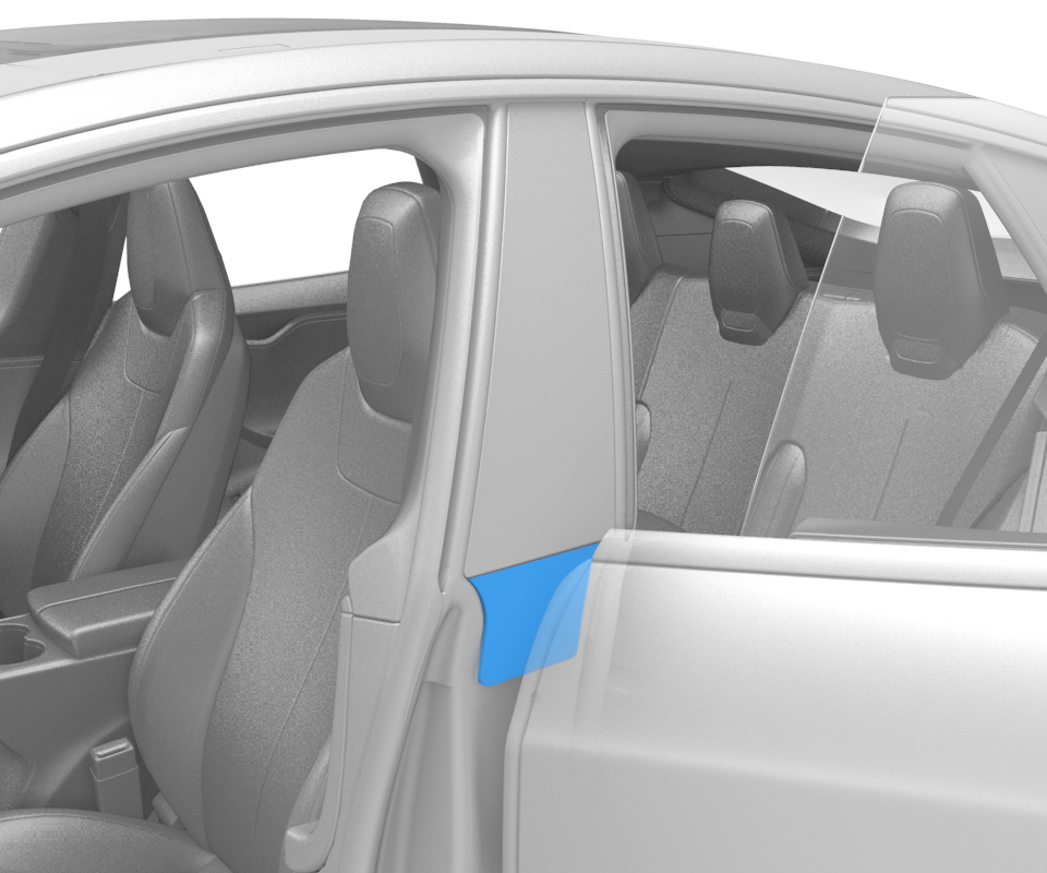 - Slide the B-pillar trim panel up into the clips, and then press the B-pillar trim panel into the B-pillar to secure double-sided tape.