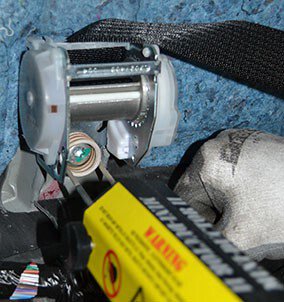 - If the seat belt reel was secured to the body with a bolt that had adhesive patch material, thoroughly clean the female threads in the rear node and replace the bolt with one that does not have adhesive patch material.