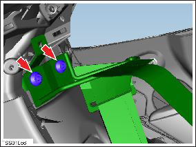- Remove the bolts (x2) that secure the seat belt bracket to the body (torque 40 Nm).