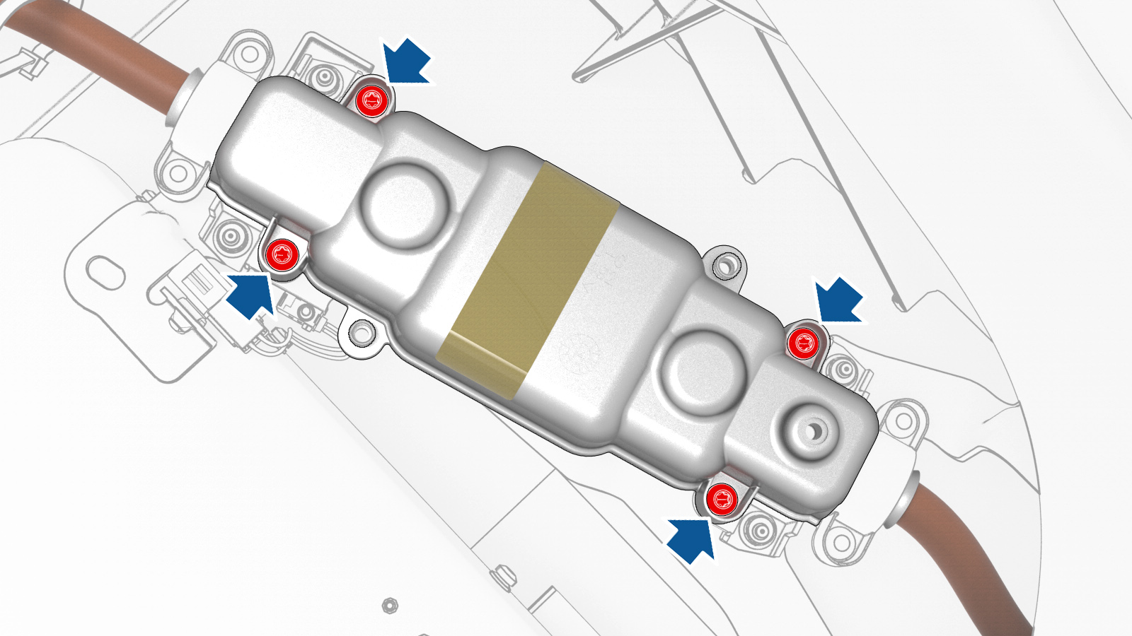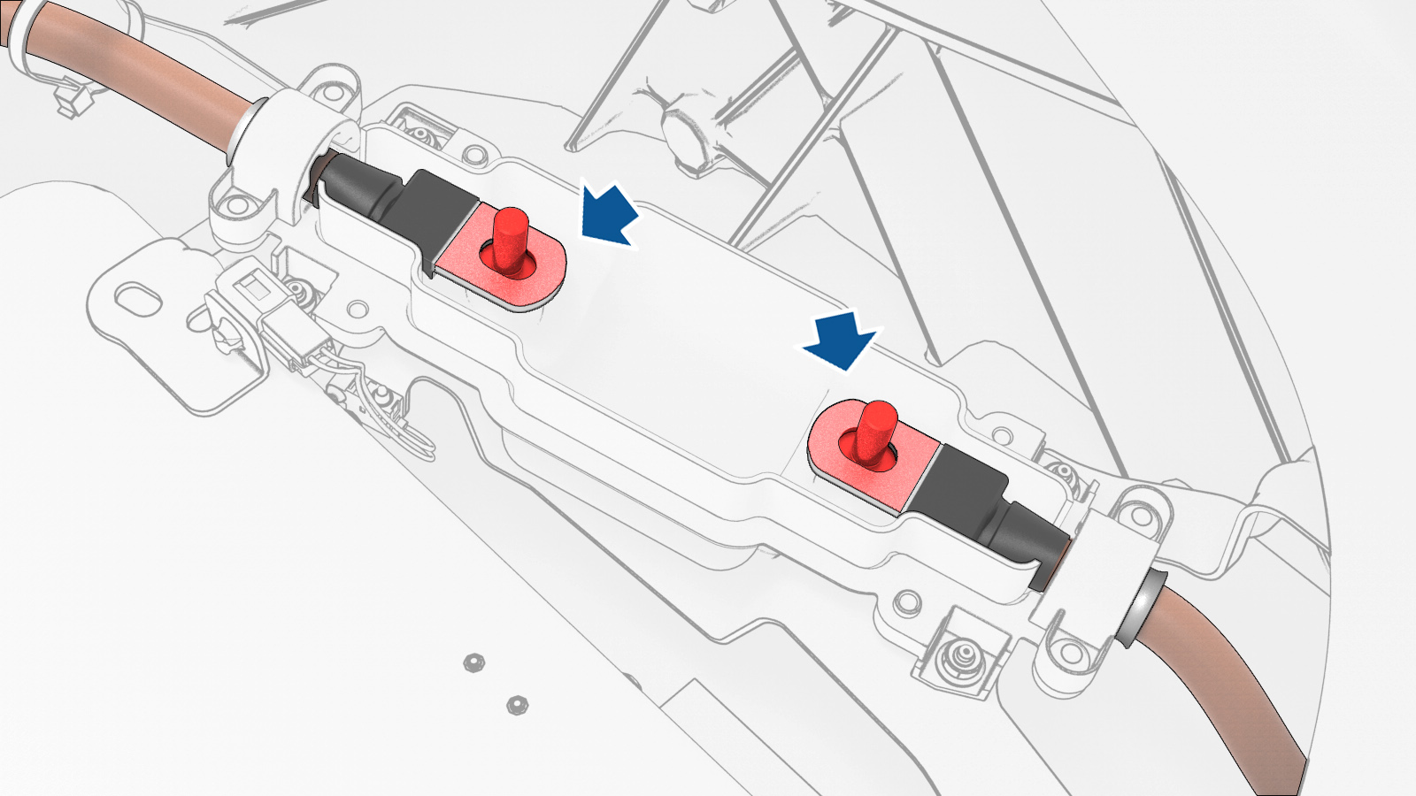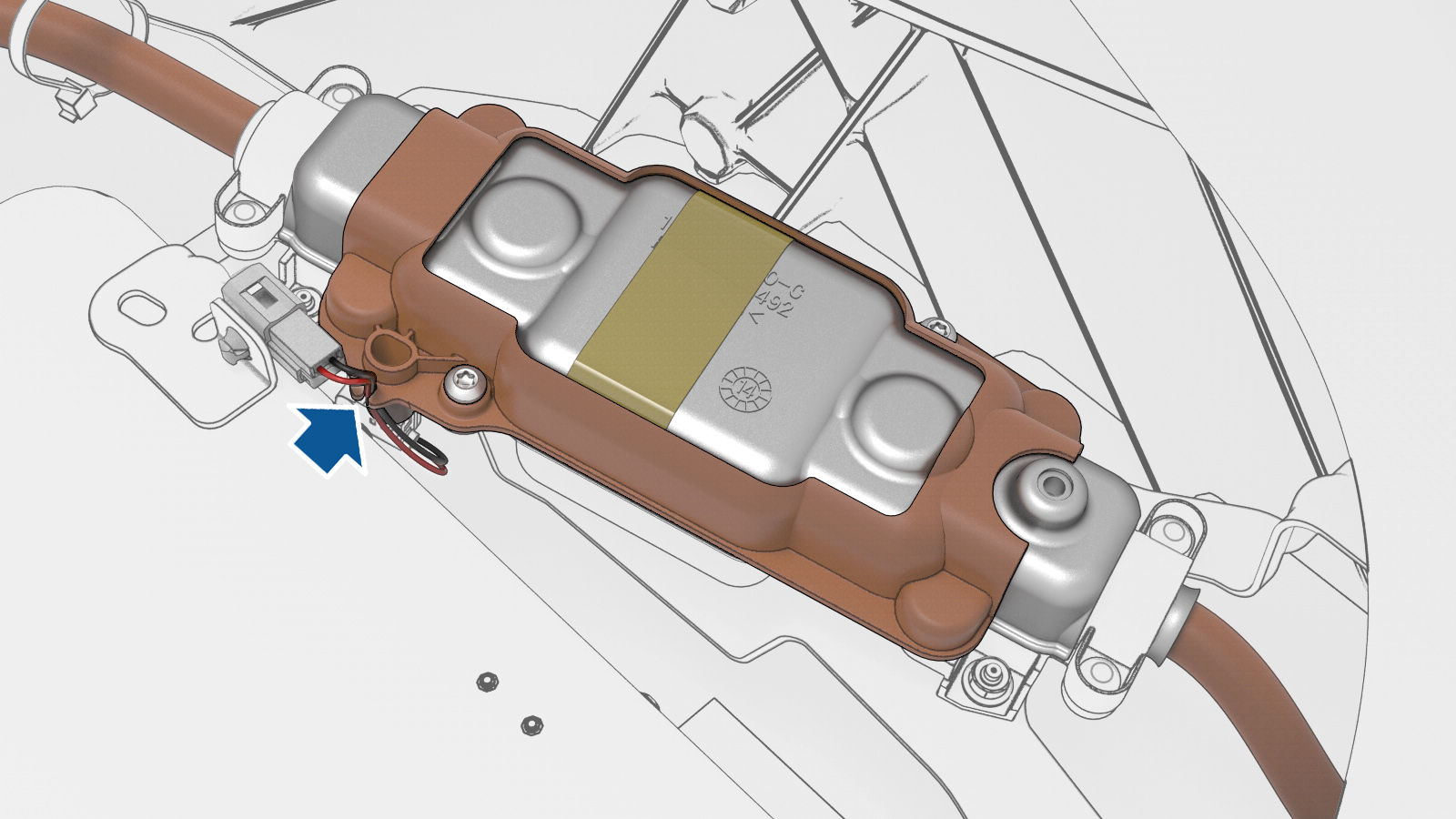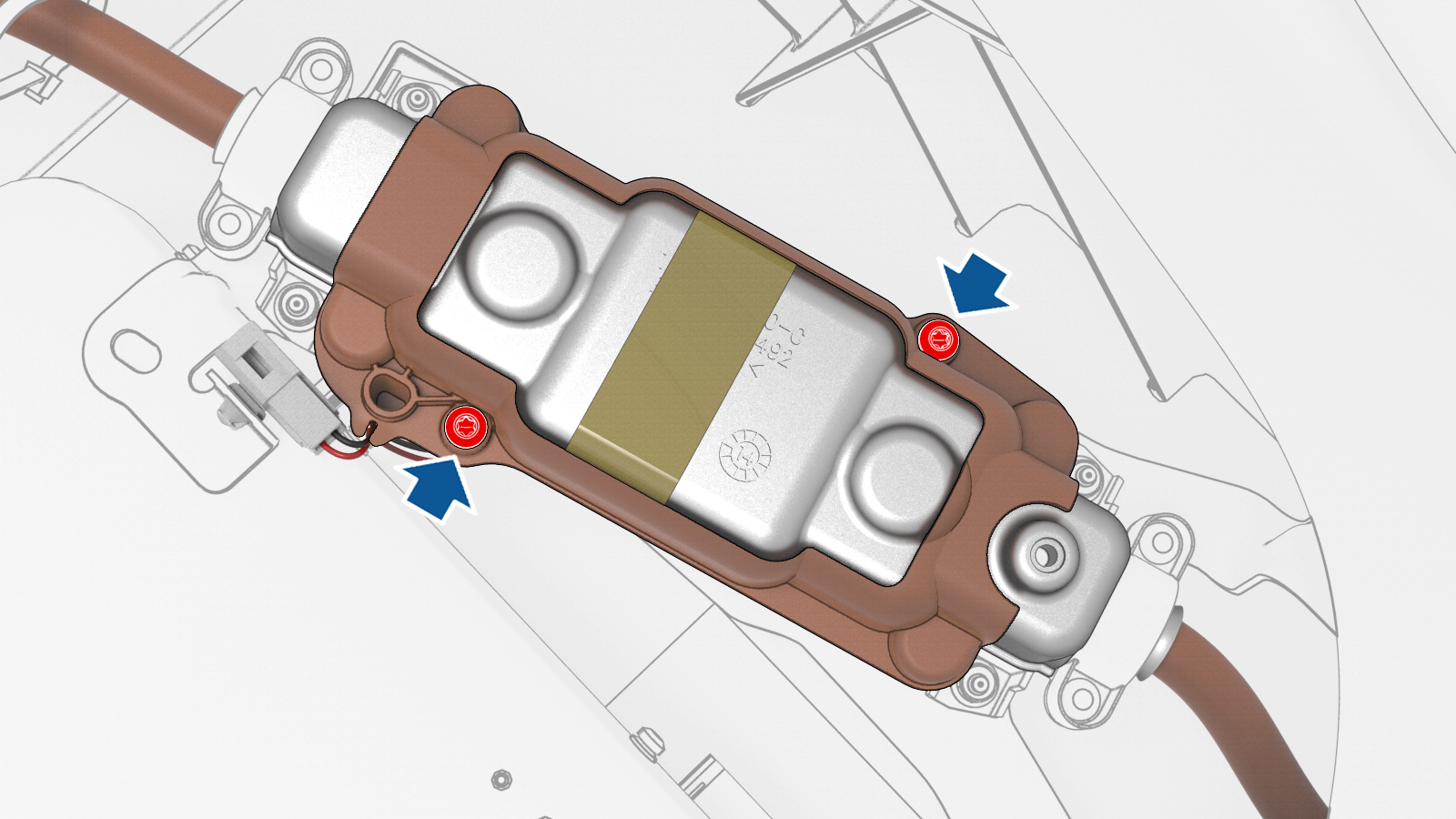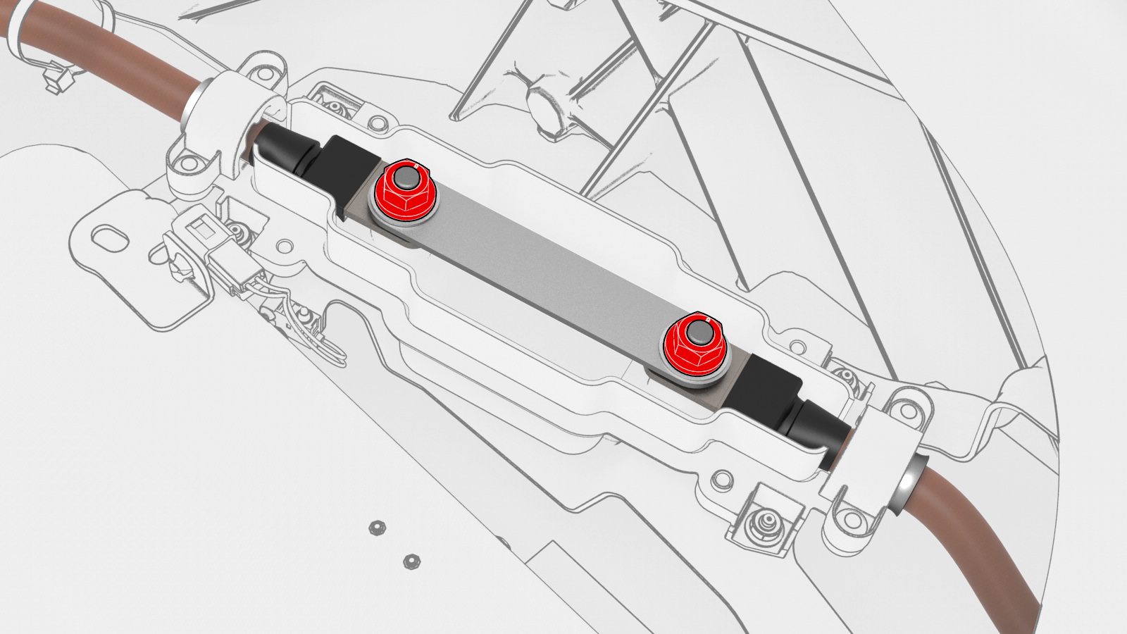 - Install the bolts (x2) (torque 3.5 Nm) that attach the HVIL activation cover.