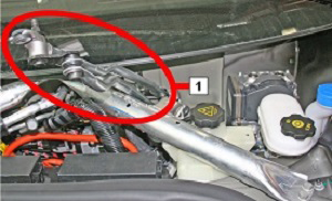 - Remove the clip that secures the LH side of the washer fluid reservoir to the crossmember.