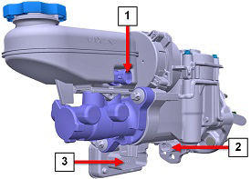 the front and rear hydraulic lines to the master cylinder (torque 20 Nm).
