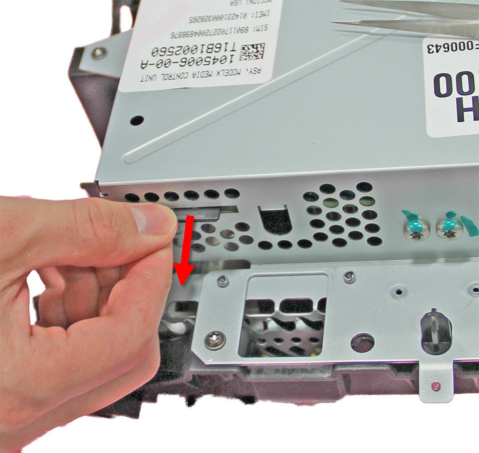 CAUTIONIf the Micro SD card is accidentally dropped into the MCU chassis, completely remove the MCU from the vehicle, and gently shake the MCU with the Micro SD card slot down to work the loose Micro SD card out of a chassis opening. If this is unsuccessful, the MCU will need to be opened to remove the Micro SD card.