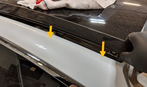 NoteThe 2nd generation side applique can only be removed and reinstalled 10 times before it must be replaced due to damage to the clips. If there are already 9 or more marks on the underside of the applique, replace it.