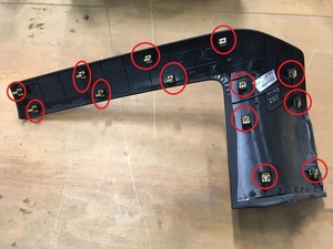 - Install the clips (x13) that attach the RH instrument panel lower assembly.