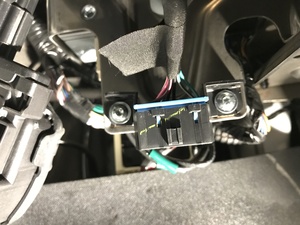 - Install the bolts (x3) that attach the tuner bracket to the instrument panel (torque 6 Nm).