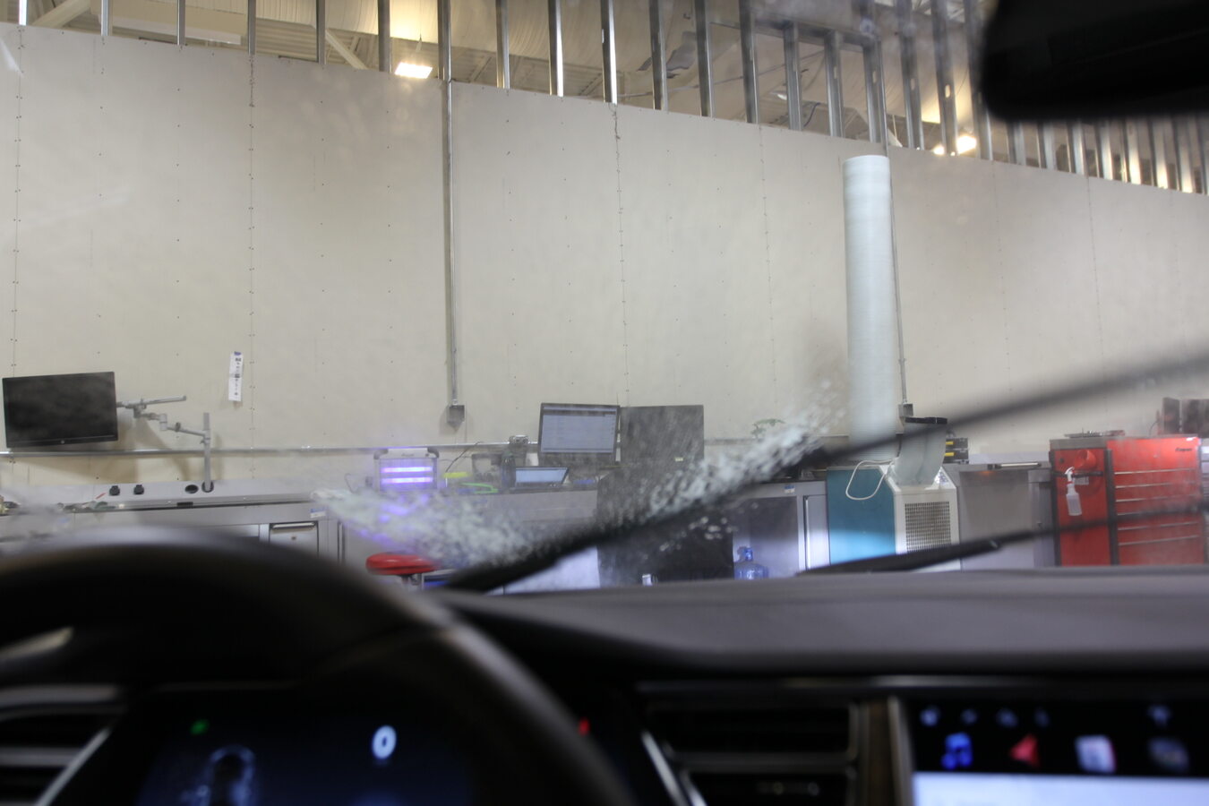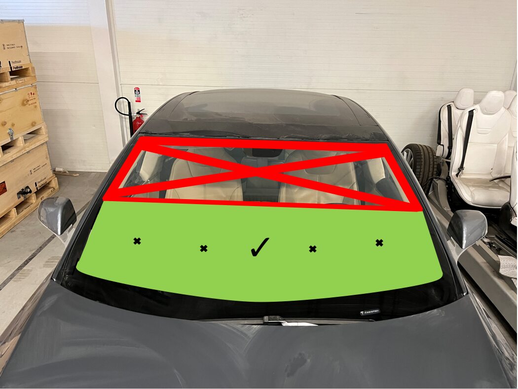 NoteAlign the washer jet angle to between the middle of the windshield and 15 mm above the black border of dots (frit) along the bottom of the windshield (11 degrees +/- 1 degree).