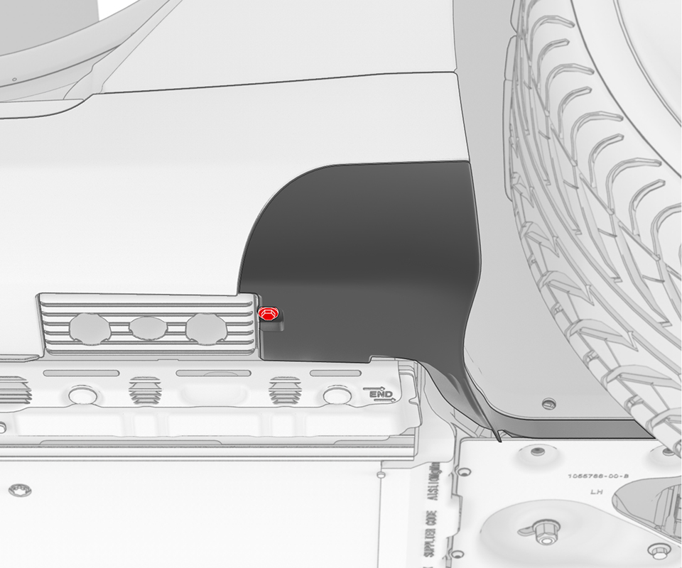 - Remove the bolt behind the LH rear wheel well liner that attaches the LH rear wheel fairing to the vehicle, and then remove the fairing (torque 10 Nm).