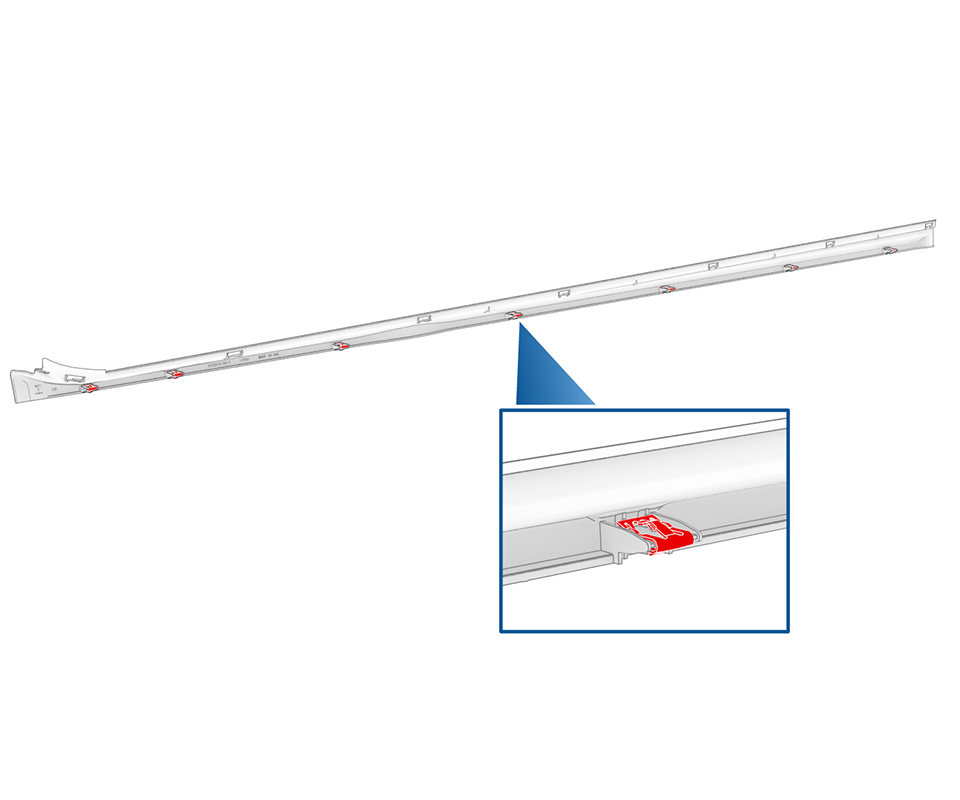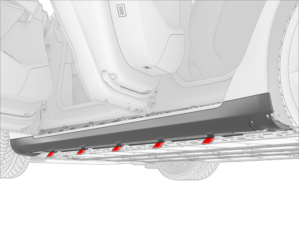 - Release the clip that attaches the rear LH rocker panel molding to the vehicle.