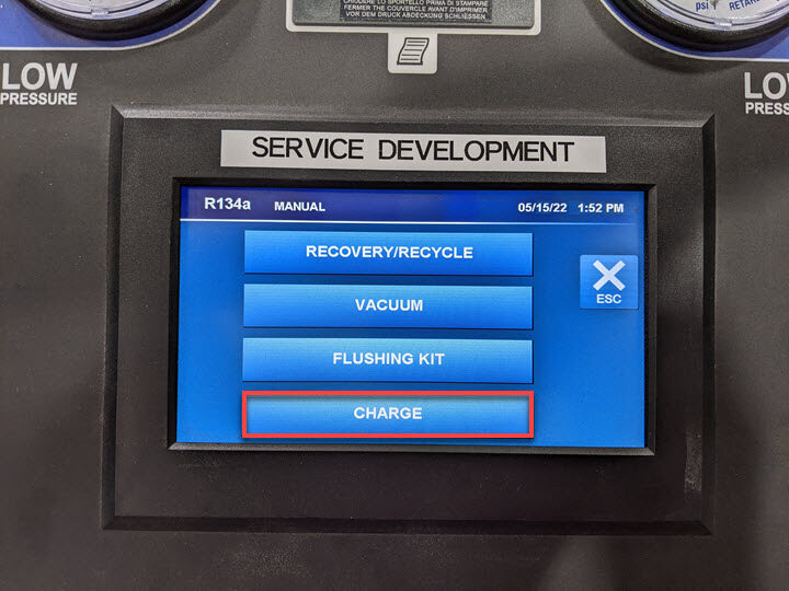 NoteTouch time only: Note the amount of refrigerant and oil recovered. Refrigerant Type > Manual Menu > Recovery/Recycle > Verify hose connections, Machine will chime once process is complete, Vehicle may be left unattended, Note or print the amount of refrigerant and oil recovered.