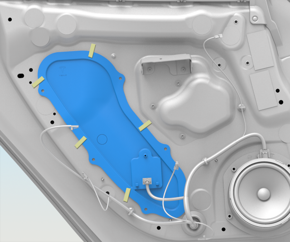 - Install butyl patches covering the LH rear door access holes for the window regulator and handle hardware.