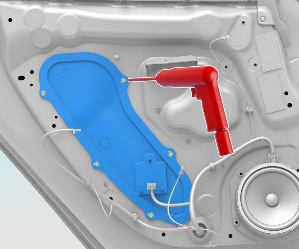 - Install and tighten the screw (x1) to hold the top of the door handle module to the closeout panel (torque 2 Nm).