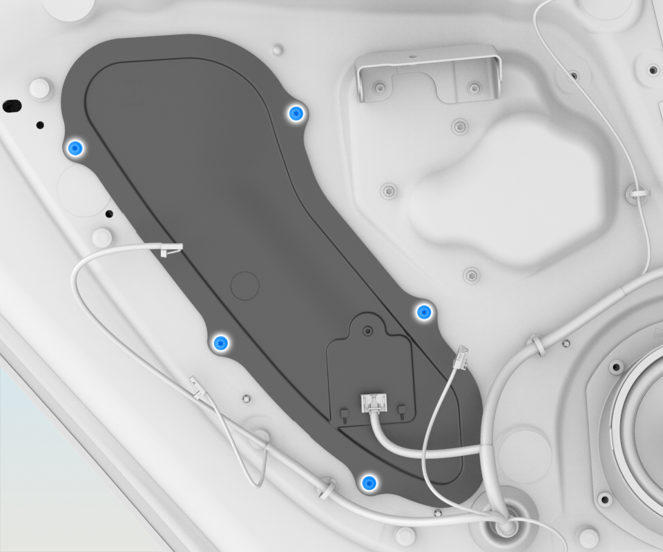 - Install the updated closeout panel and make sure the manual door handle release cable is routed properly.