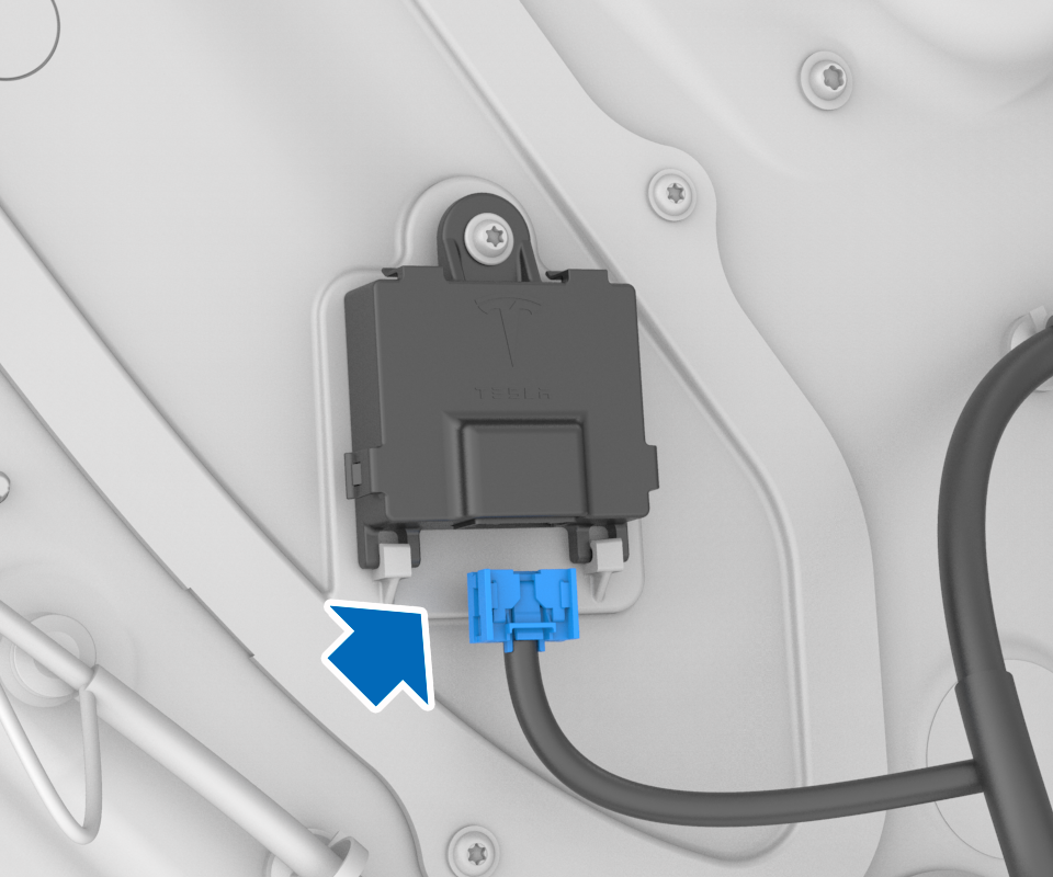 - Connect the door handle wiring harness to the door handle module mounted on the closeout panel.