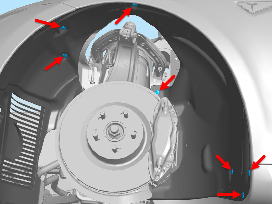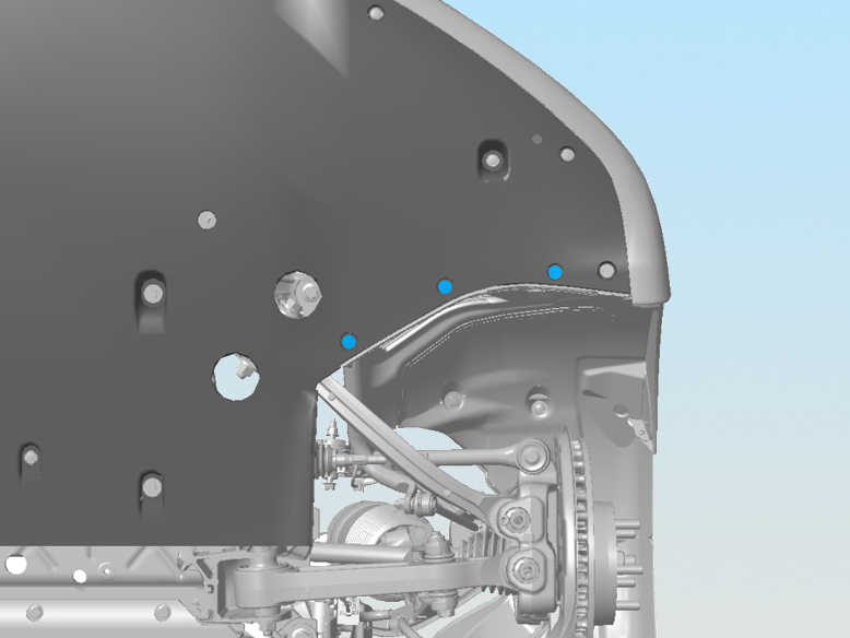 - Release the fasteners (x3) that secure the front aero shield to the arch liner (torque 4 Nm).