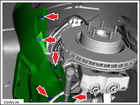 Remove plastic rivets (x4), nut (x1) securing lower wheel arch liner to upper wheel arch liner and chassis (torque 3 Nm).