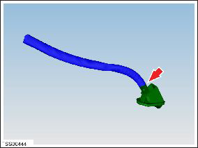 - Release the clip that secures the washer jet to the hood. Remove the washer jet from the hood.