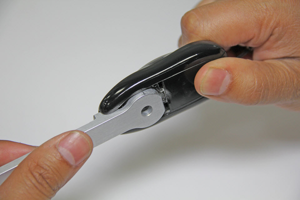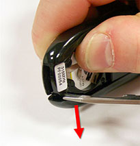 - If using the special tool: Put the rounded side of the tool inside the battery compartment. Turn the tool to the left and to the right to remove the side panel.
