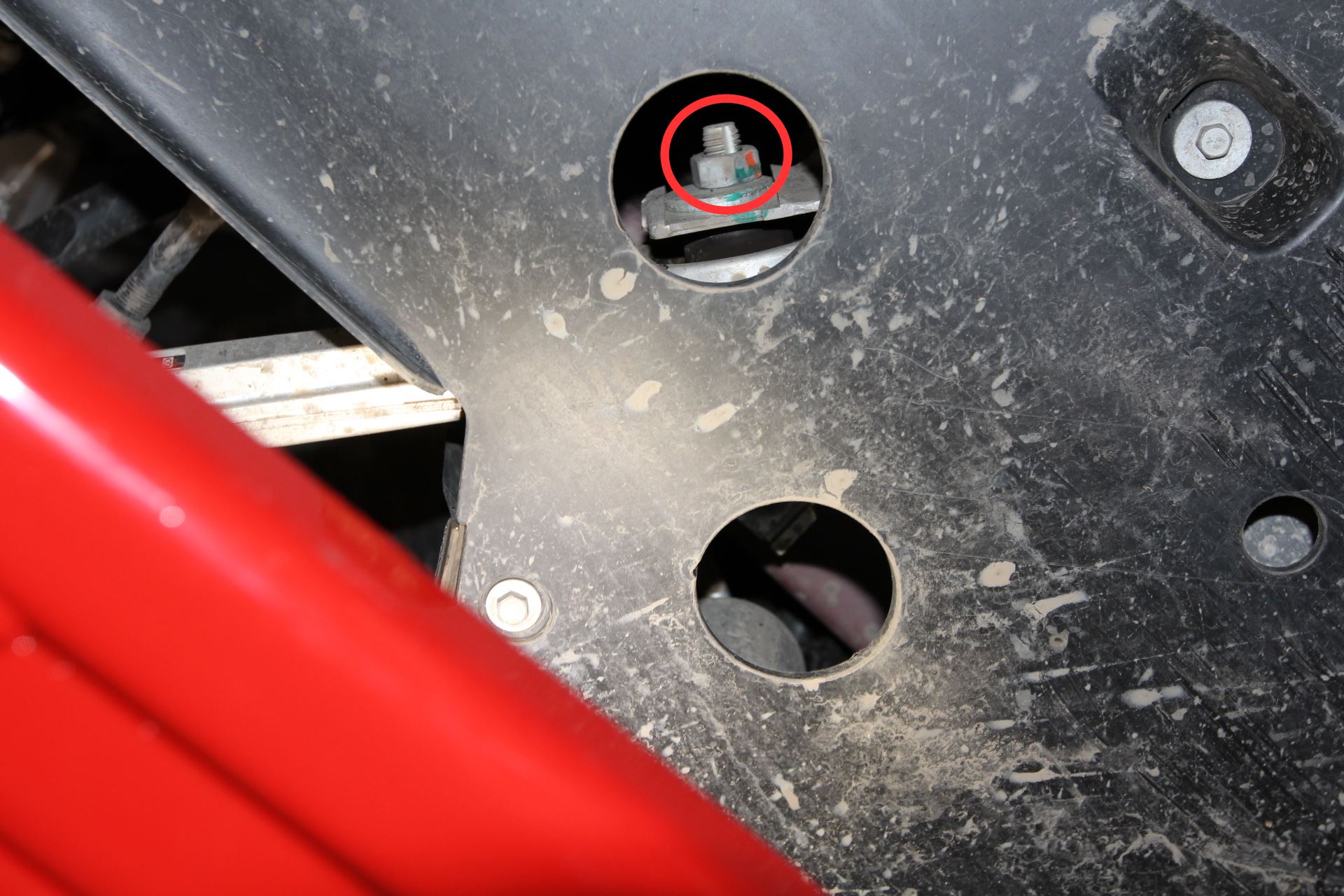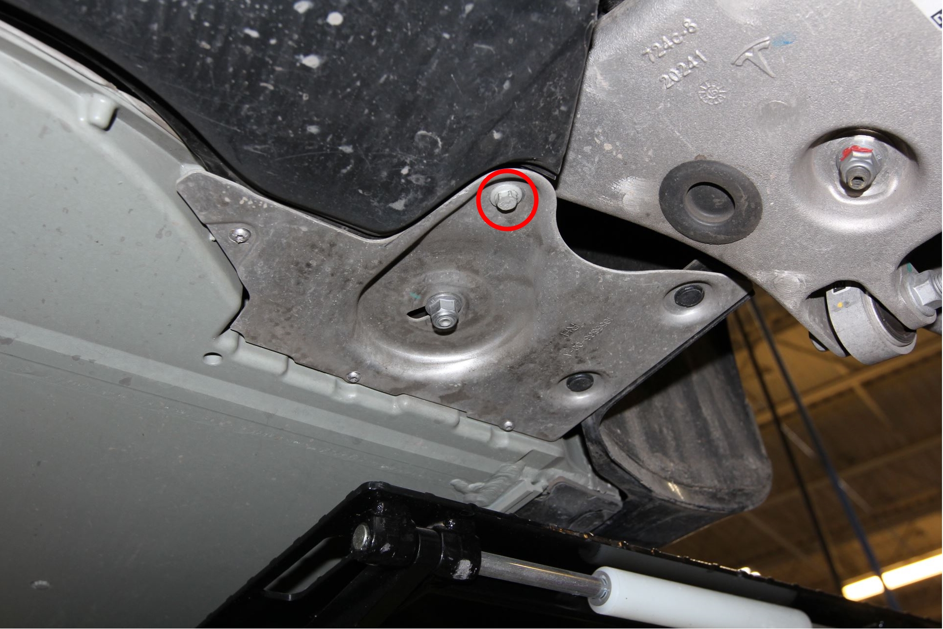 - Remove the bolt that attaches the RH shear plate to the vehicle.