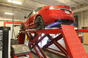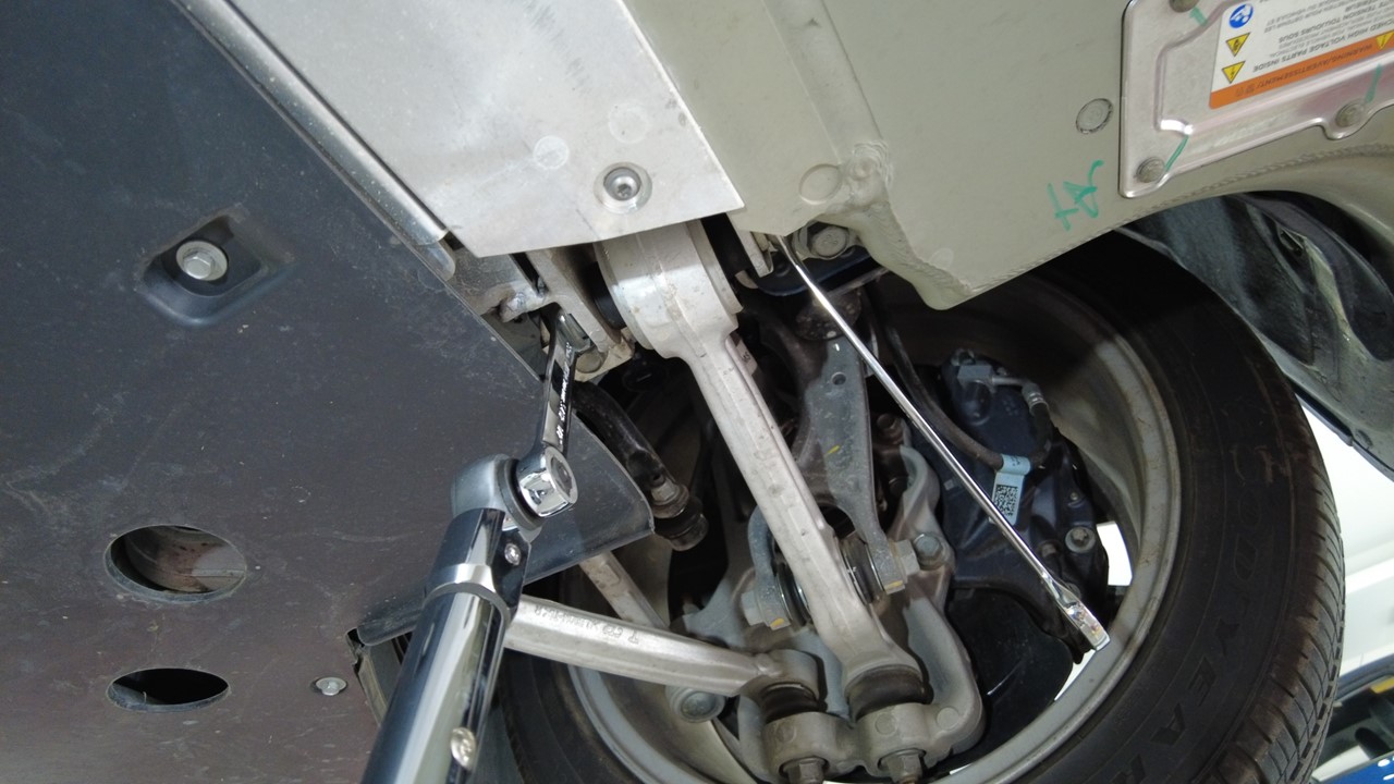 - Raise the alignment rack higher so as to work under the vehicle.