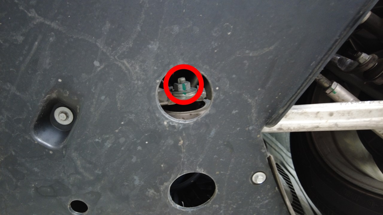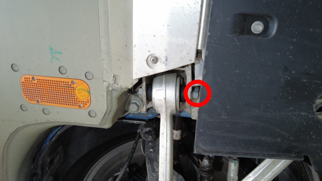 - Remove the nut that attaches the RH shear plate to the vehicle.