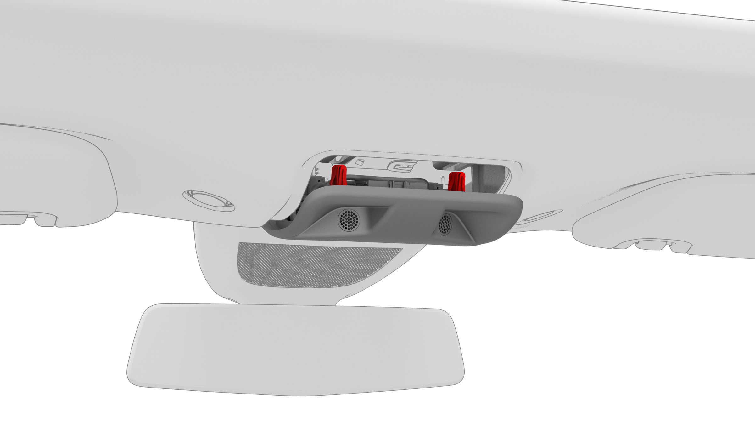 Use a trim tool to release the clips (x2) that attach the rear of the overhead console, and then pull the rear of the overhead console down.