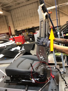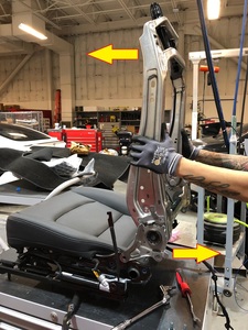 NoteInsert the rear of the seat cushion to seat bottom frame and then lower the rest on the seat cushion to the seat bottom frame, Ensure wiring harness are routed through the back of seat frame