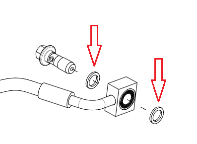 - Install new washers (x2) when reinstalling the brake hose to the caliper.
