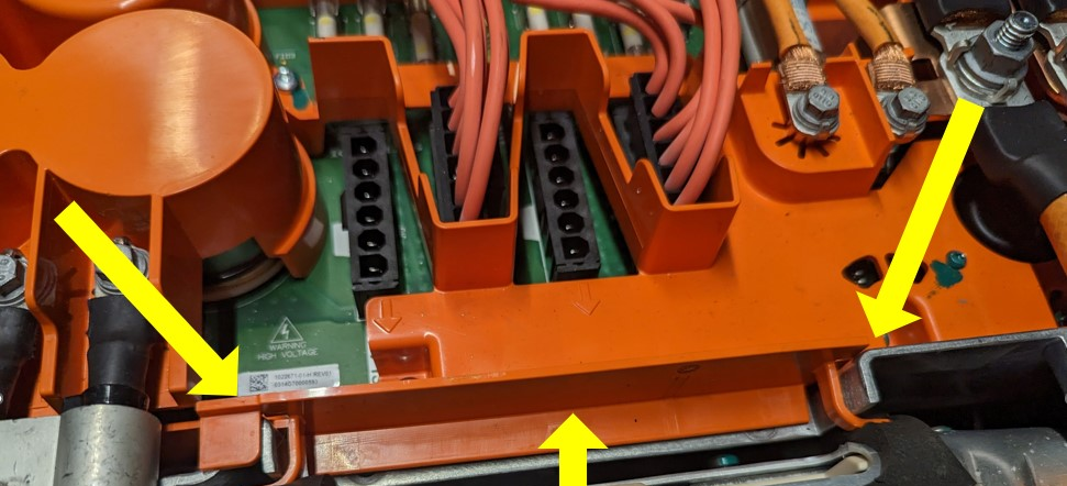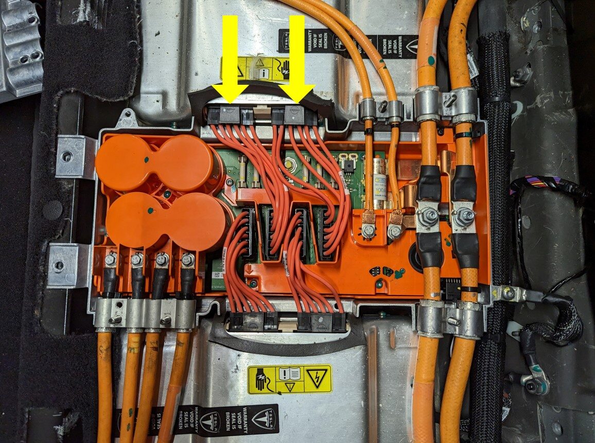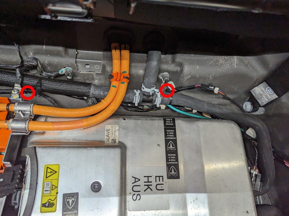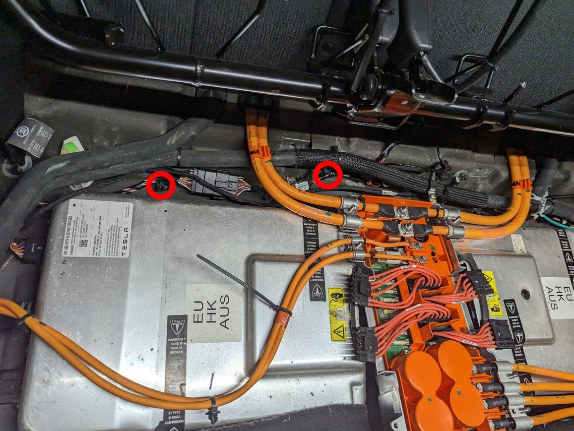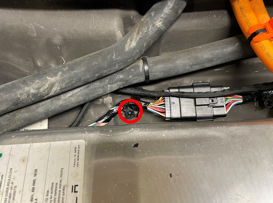- Remove the clips (x4) that attach the slave charger LV harness, remove the LV harness and discard it.