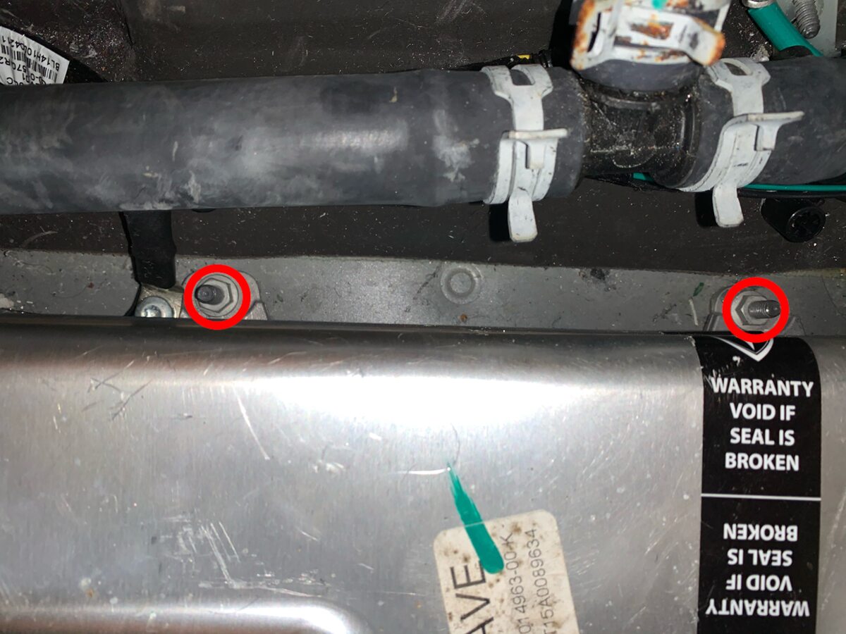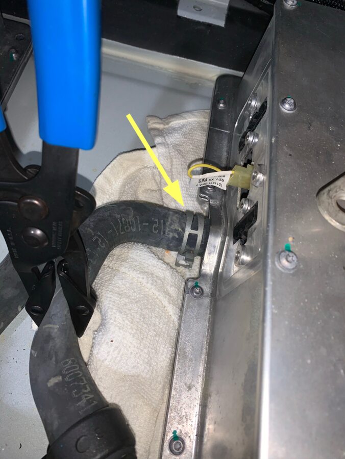 - Lift the slave charger slightly, and then put absorbent material under each coolant hose.