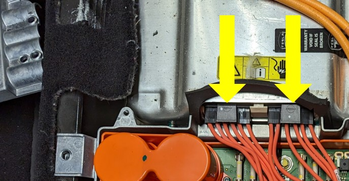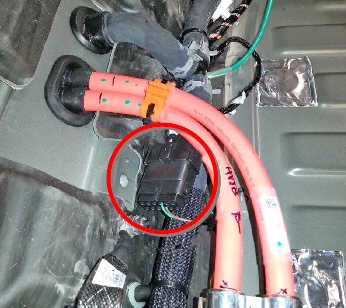 - Disconnect the master charger to junction box HV cable connectors (x2).