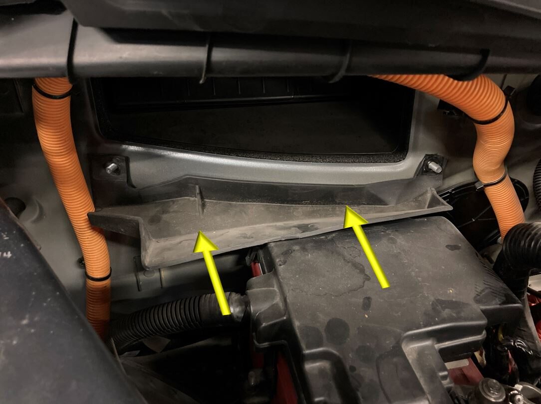 Remove rear HVAC filter housing and rubber HVAC intake drain diverter