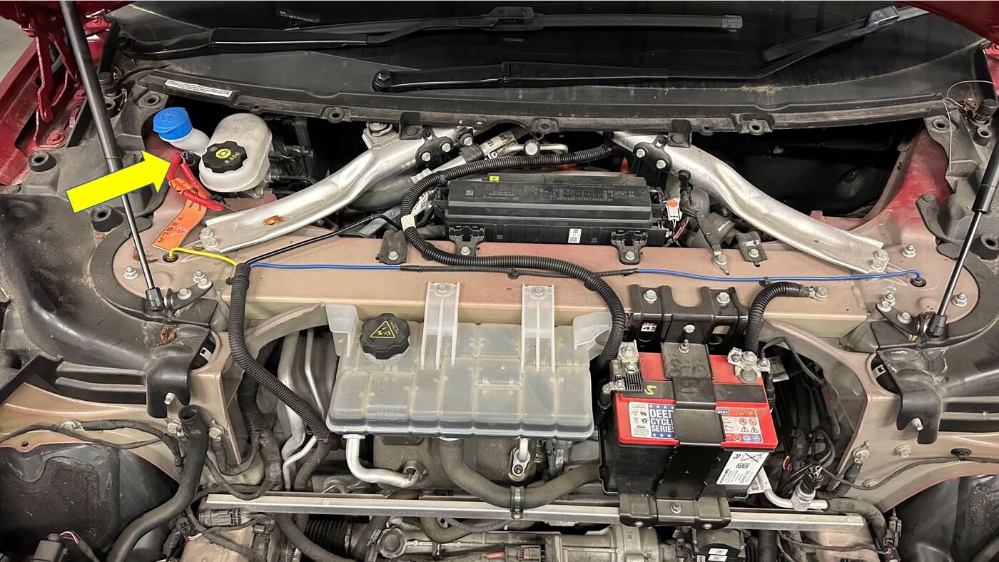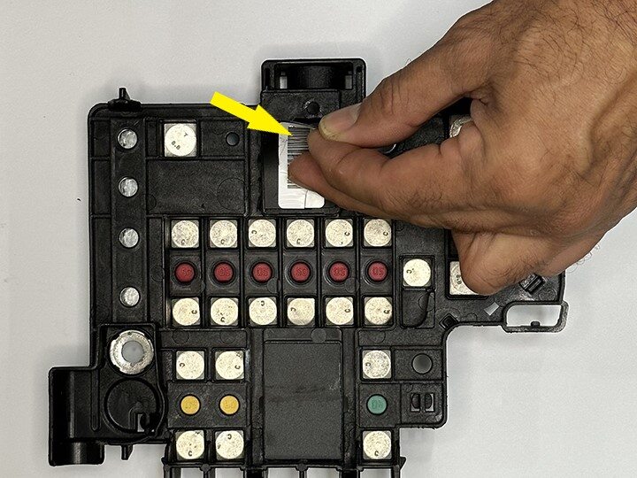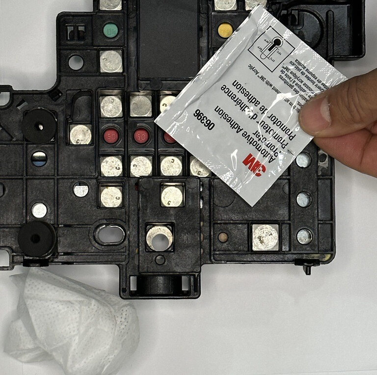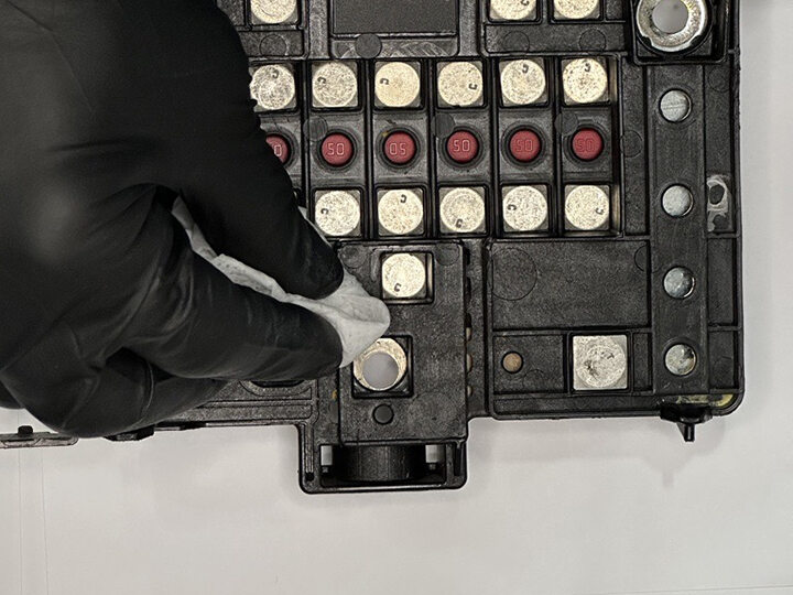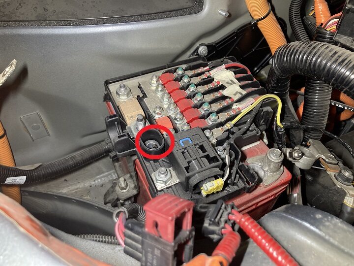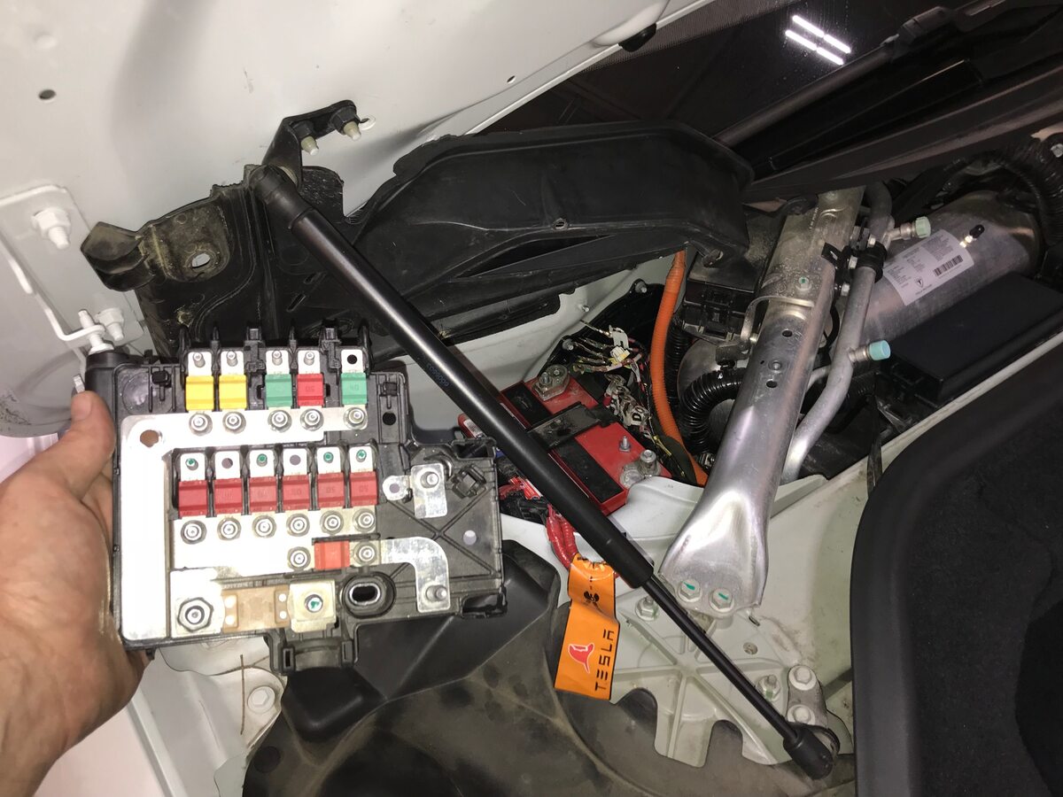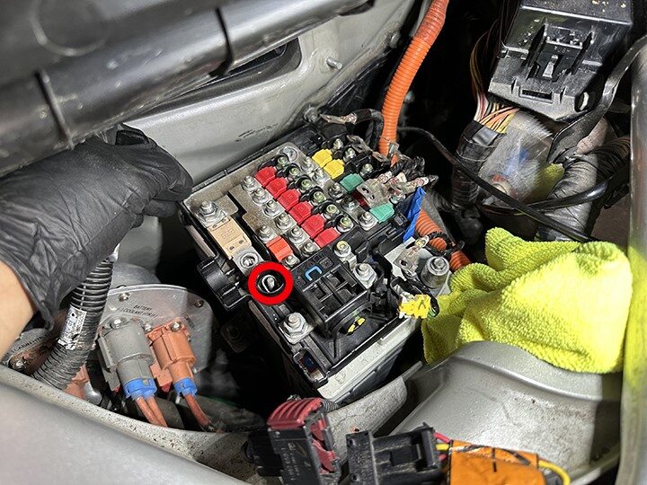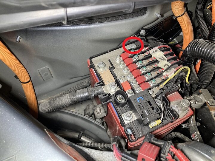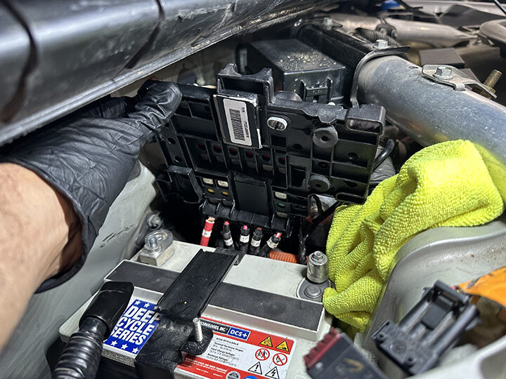 - Remove vendor label from 12V battery fuse box
