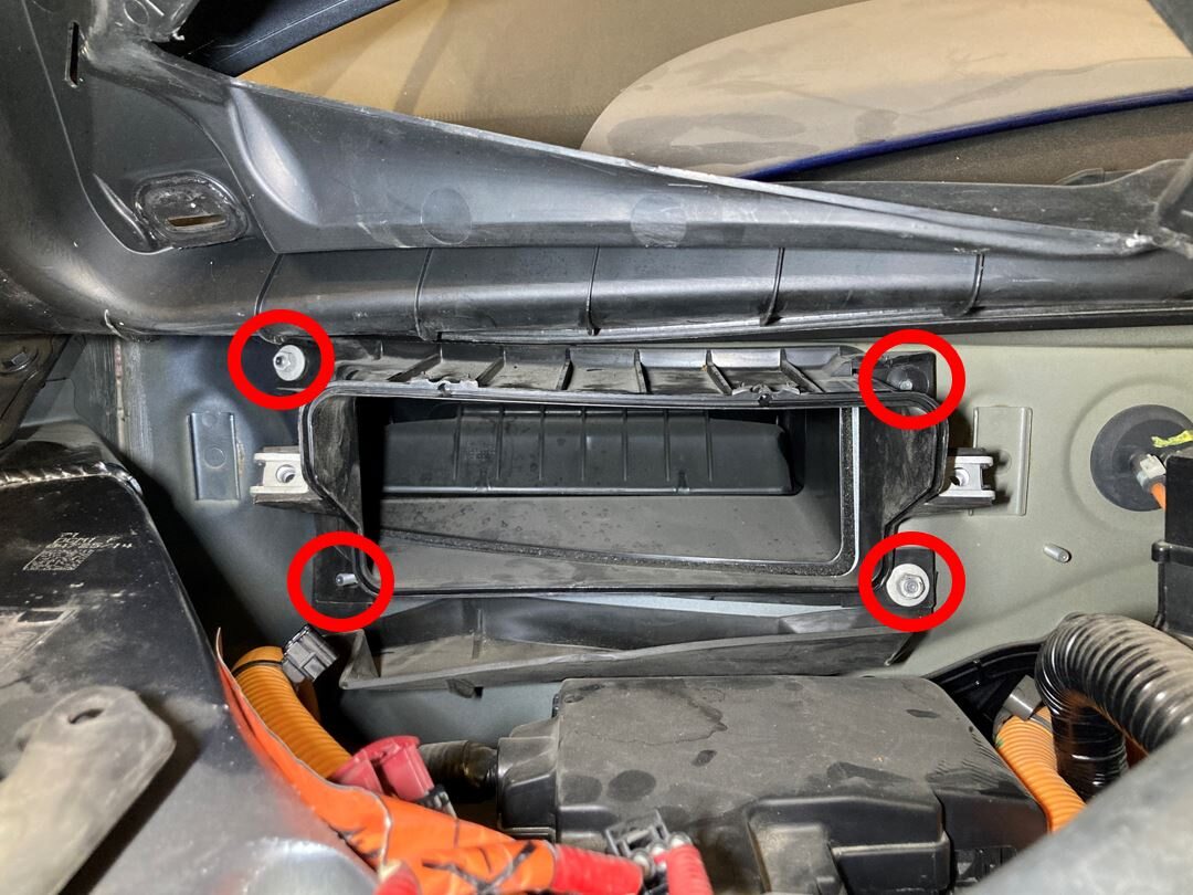 Remove bolts securing front HVAC filter housing