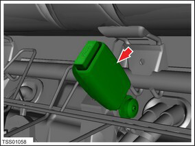 Remove bolt securing seat belt buckle to body (torque 40 Nm).
