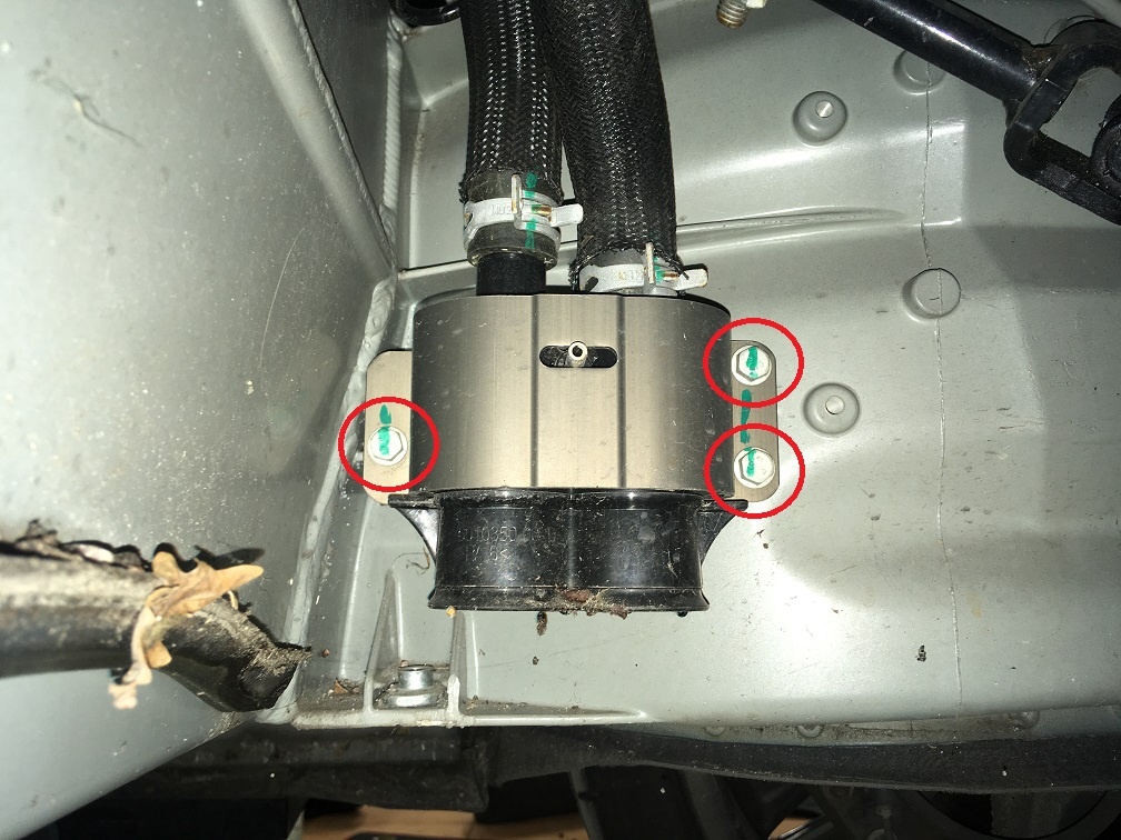 - Install the bolts (x3) that attach the coolant hose rapid mate to the body (torque 8 Nm).