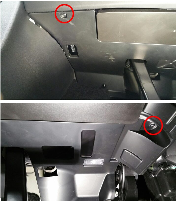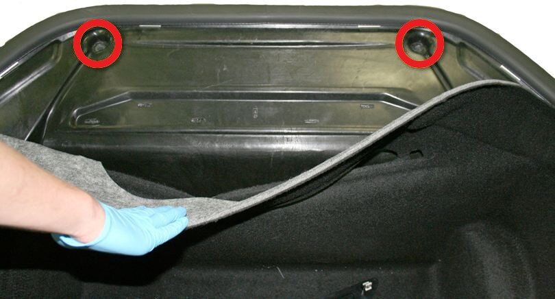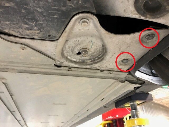 Note2x bolts, 13mm, 4 Nm, Peel back carpet for access