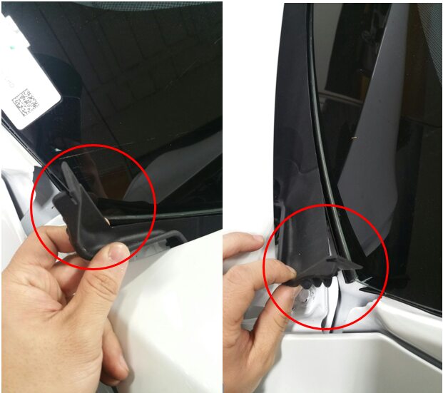 Note4x push clips, 2x end tabs, Secure along base of windshield