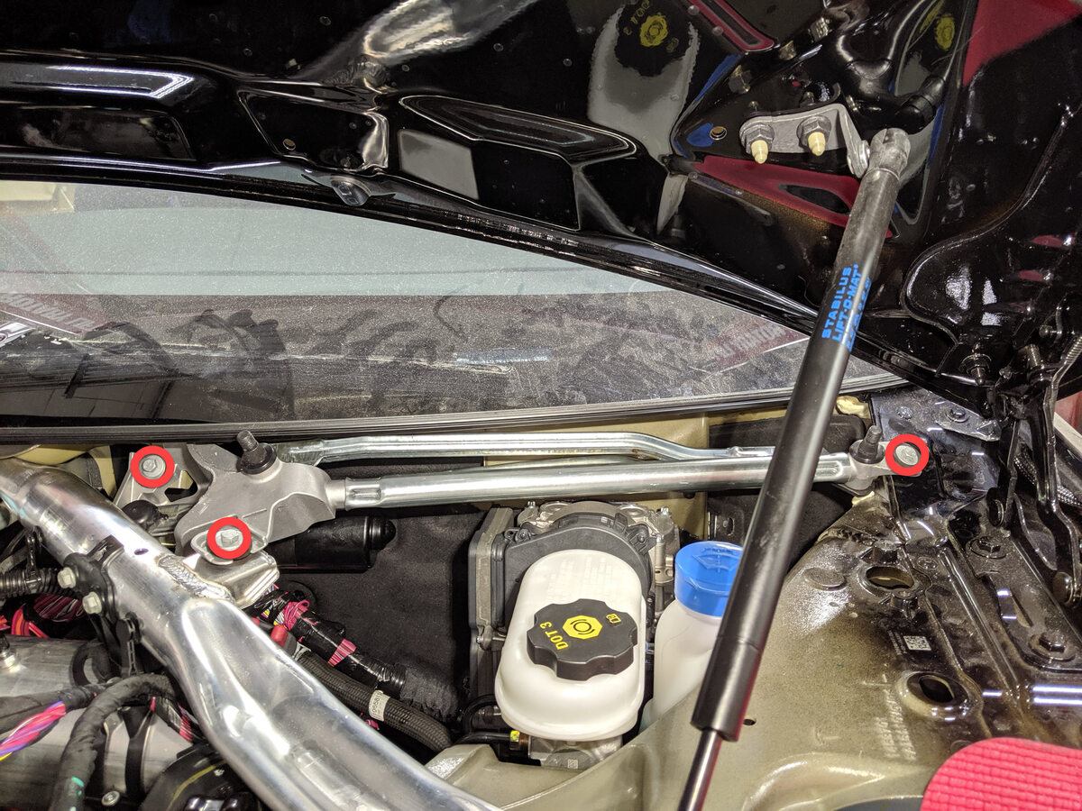 Install rear bolts securing underhood