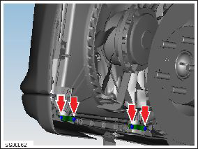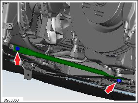 - Remove bolts (x2) securing front bumper panel support bar and remove (torque 11 Nm).