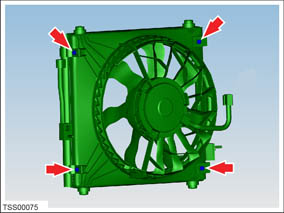 - Remove bolts (x4) securing fan motor assembly to condenser and separate from fan assembly (torque 6 Nm).
