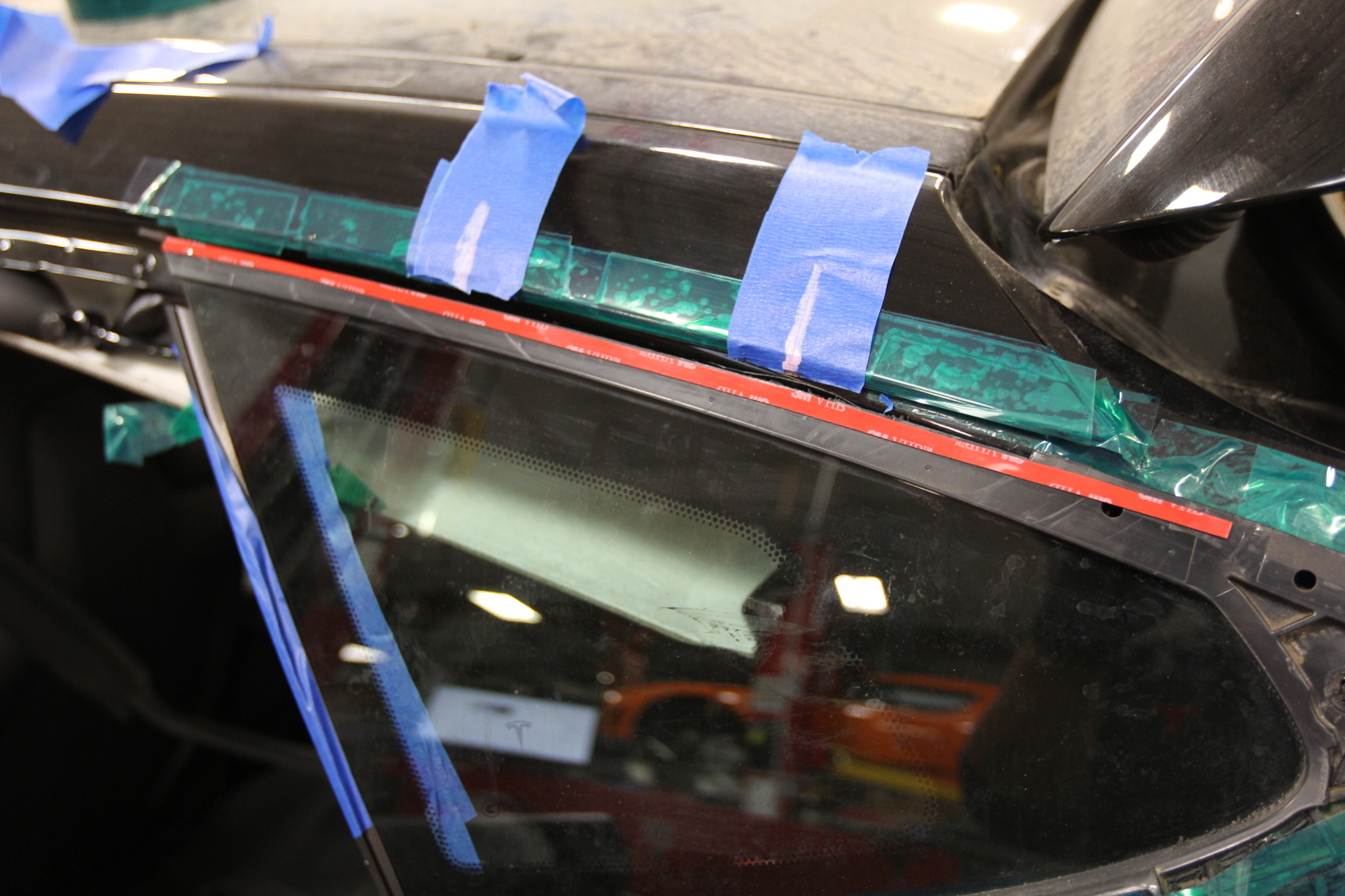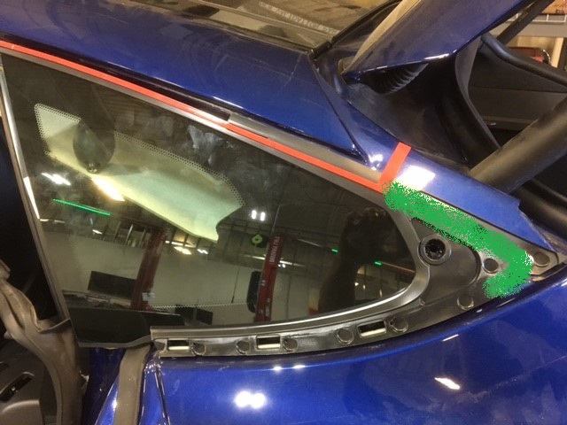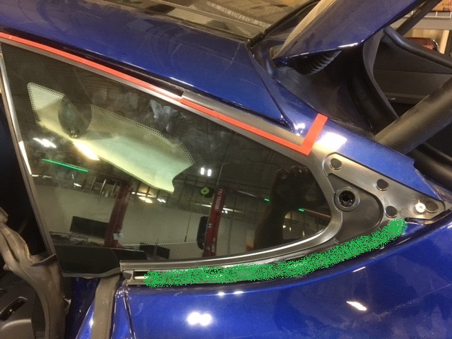 and adhesive on the rear quarter glass channel.