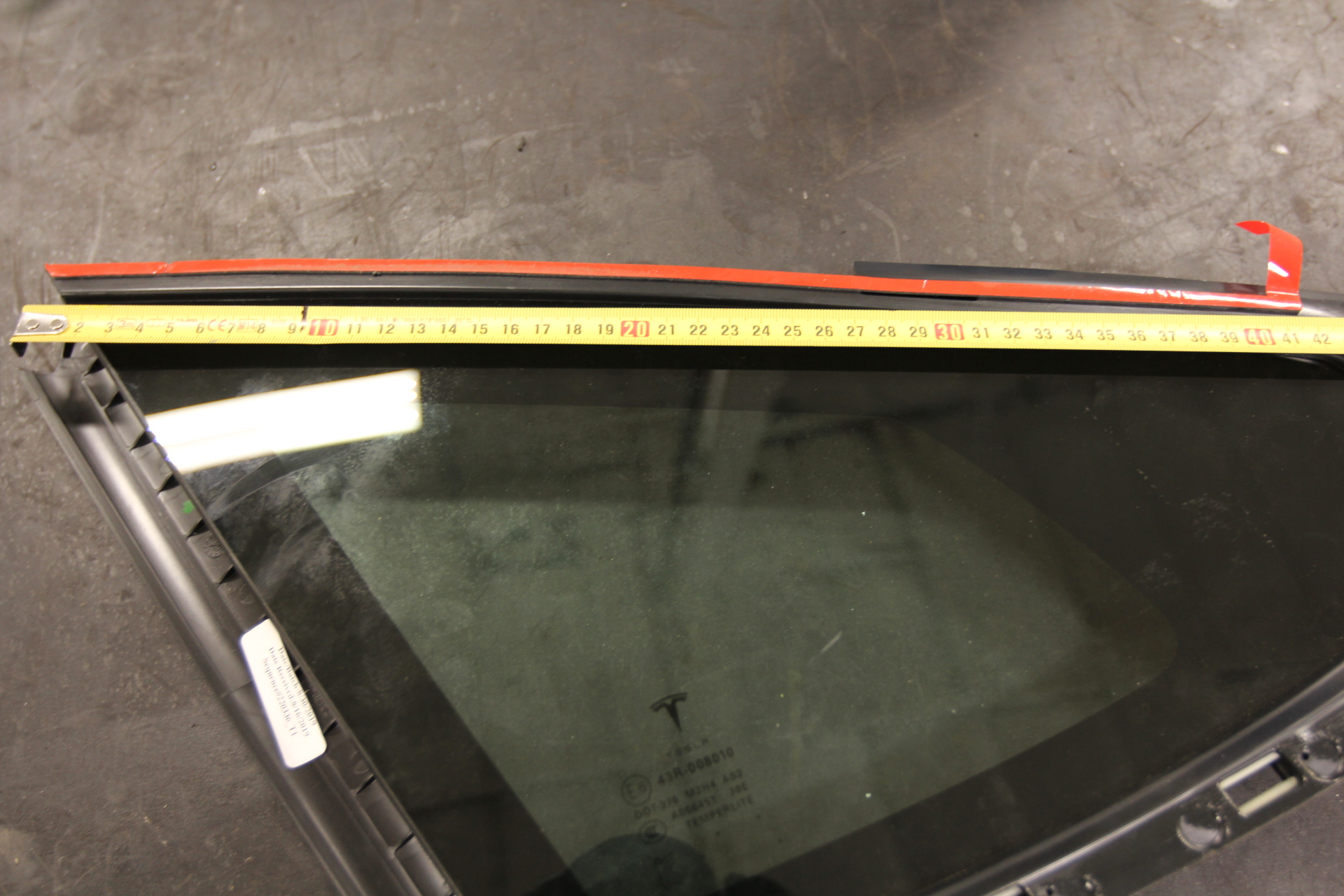 - Use the Tape Measure Metric/Inch to measure out 415 mm of 3m double sided tape, and apply it onto quarter glass.