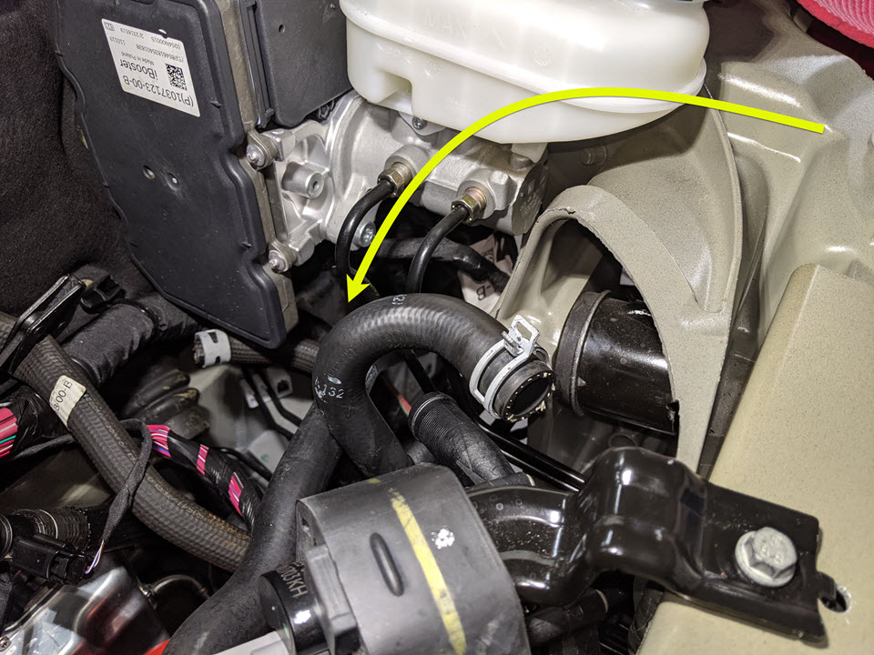 - Install the clip that attaches the hose to the front drive unit inlet hose.