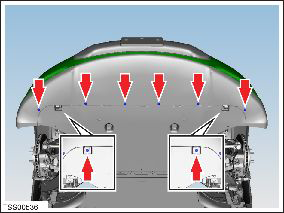 - Remove the screw that attaches the fascia panel to the RH front fender (torque 1.5 Nm).