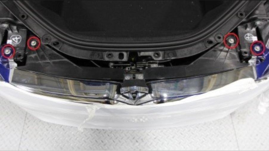 - Remove the bolts (x2) that secure the fascia and applique to the fascia carrier (torque 4 Nm).