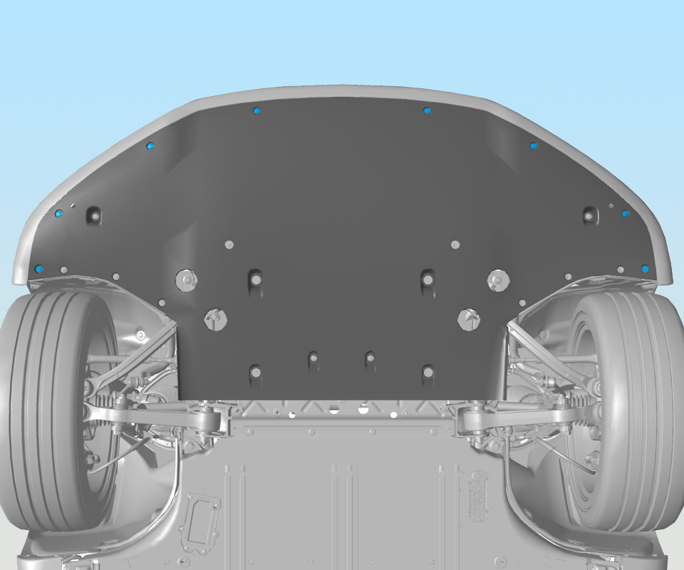 - Remove the plastic rivets (x8) that secure the undershield to the lower valance.