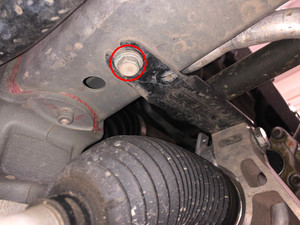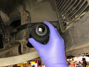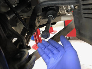 Remove the lower fastener from the RH subframe brace and remove brace from vehicle
