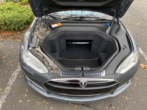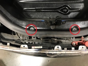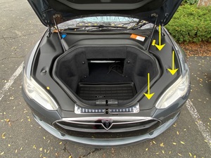 Release the front part of the frunk carpet to gain access and disconnect the frunk light and release switch